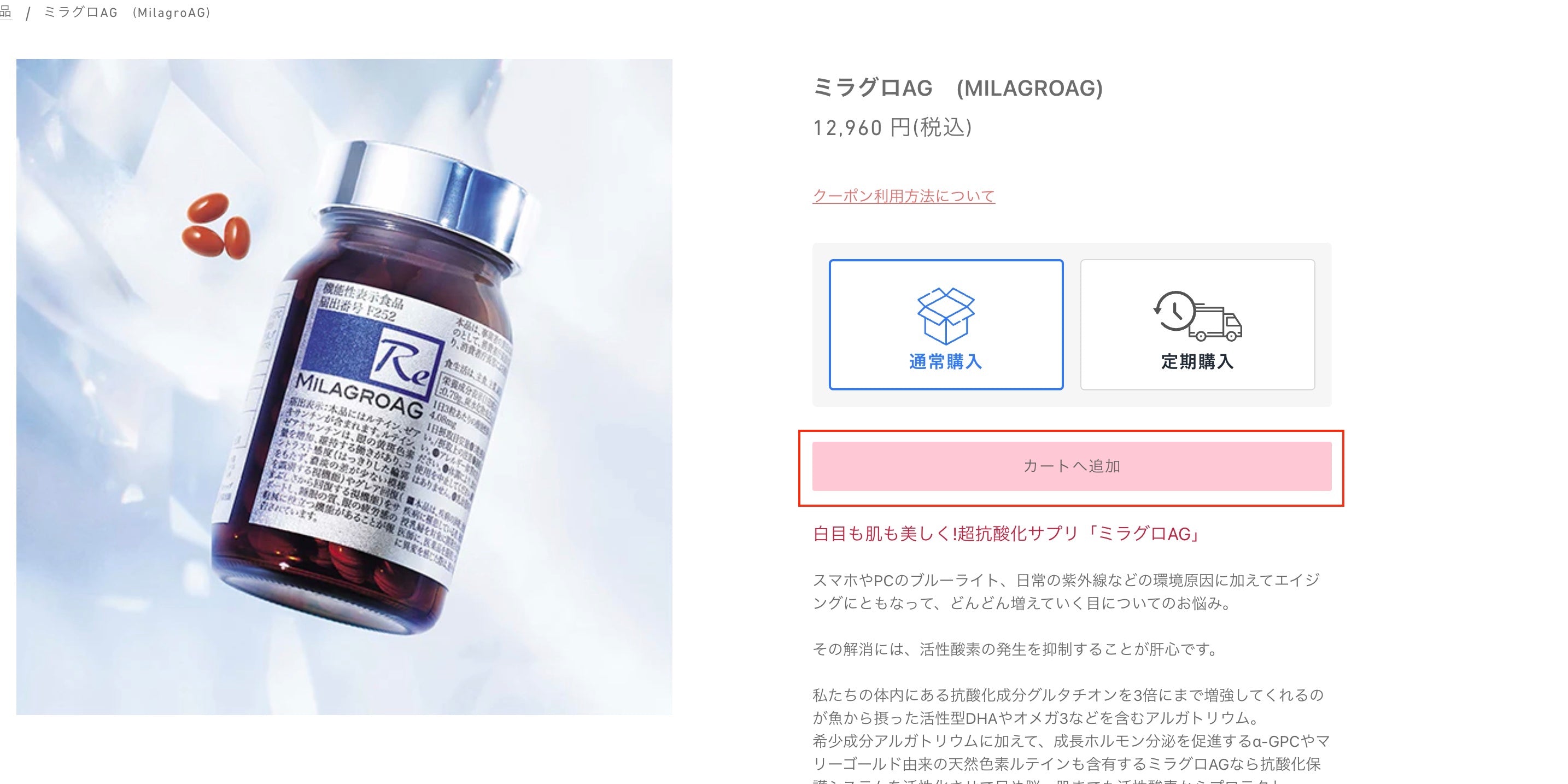1.購入したい商品をカートへ追加します。