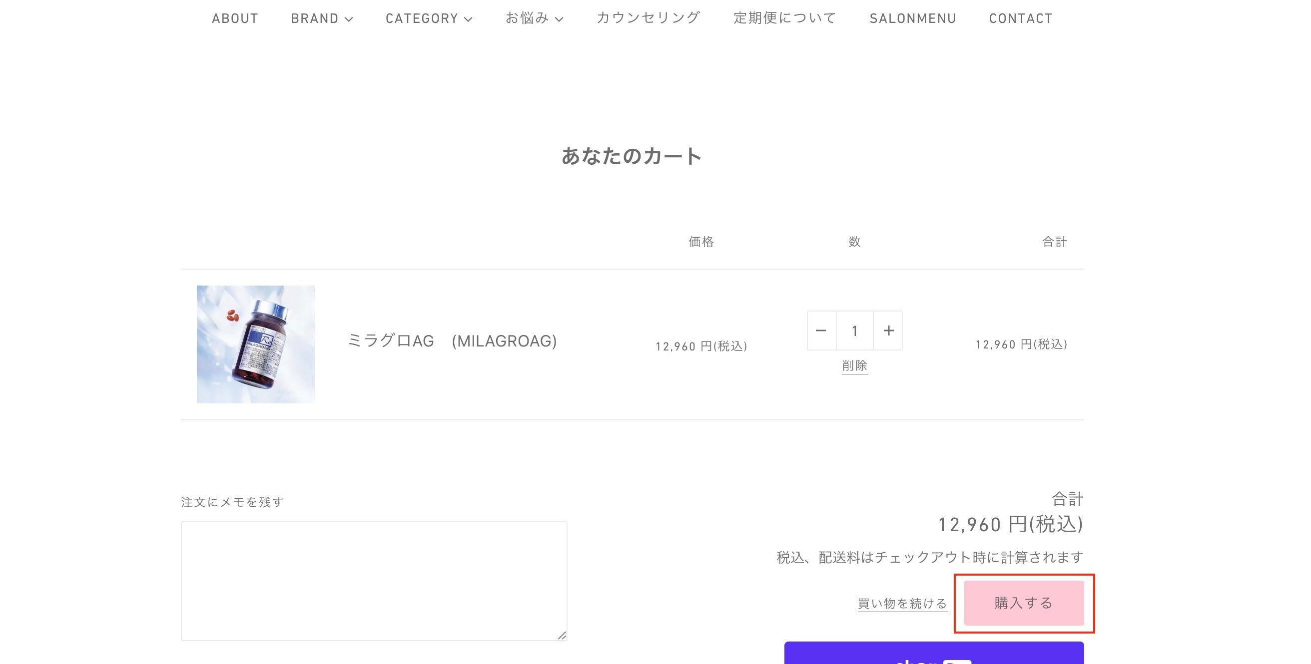 3.注文・決済ページにて