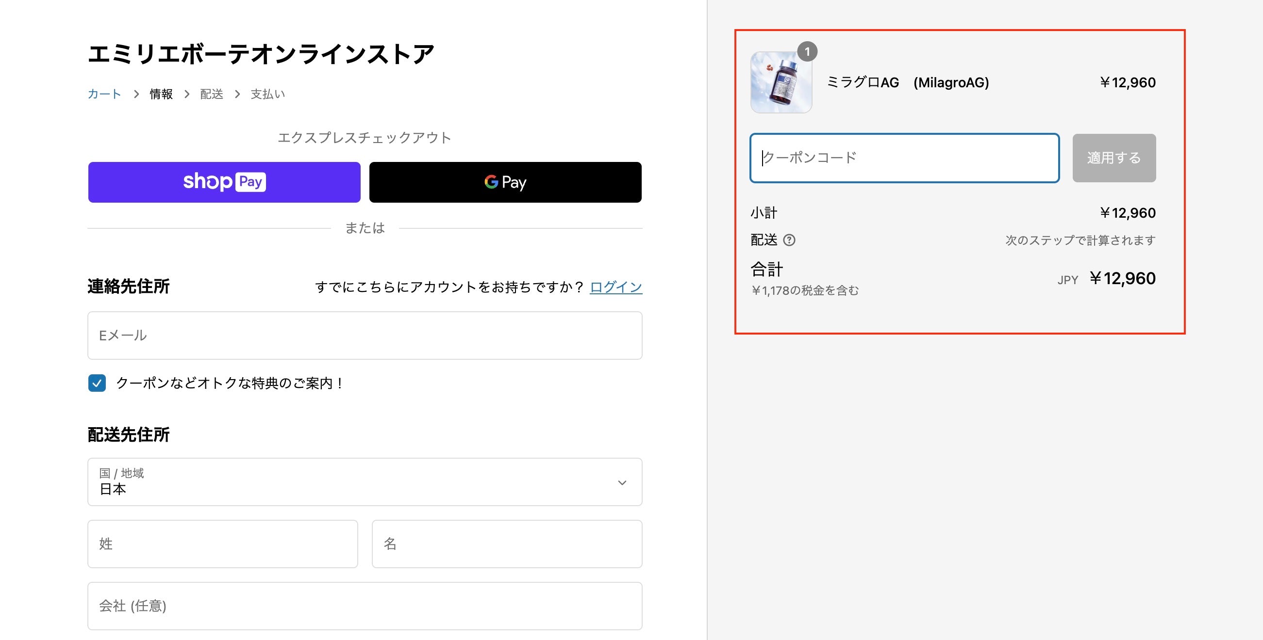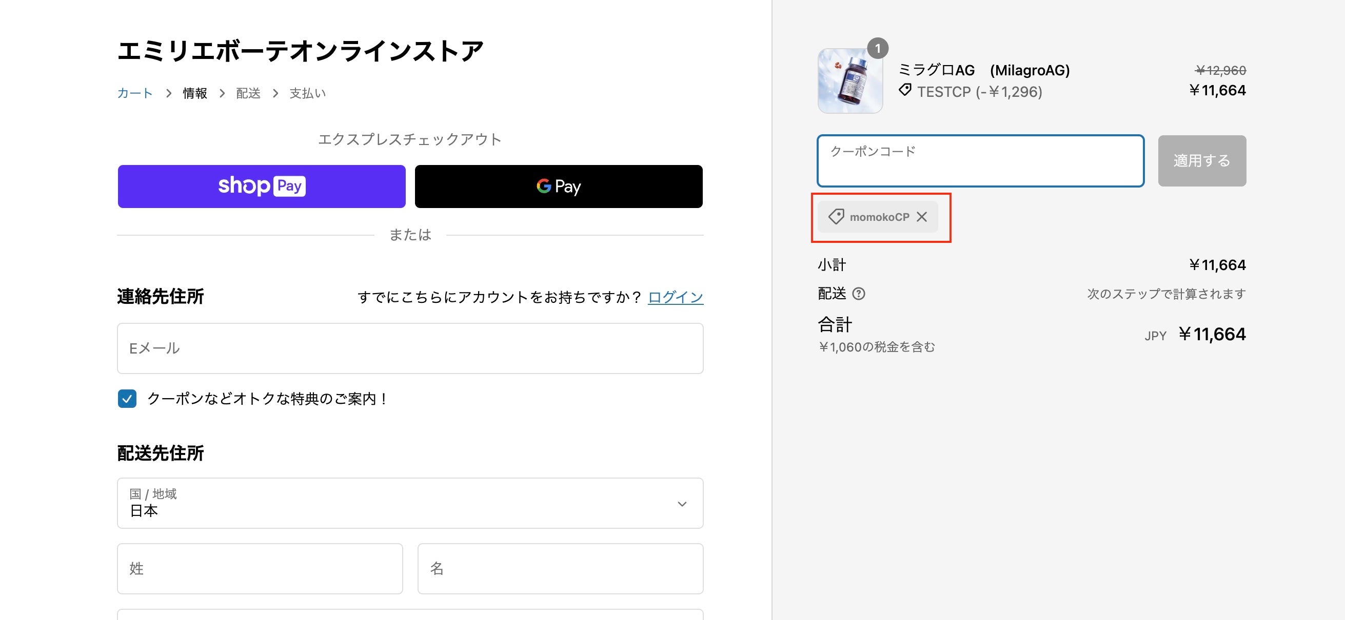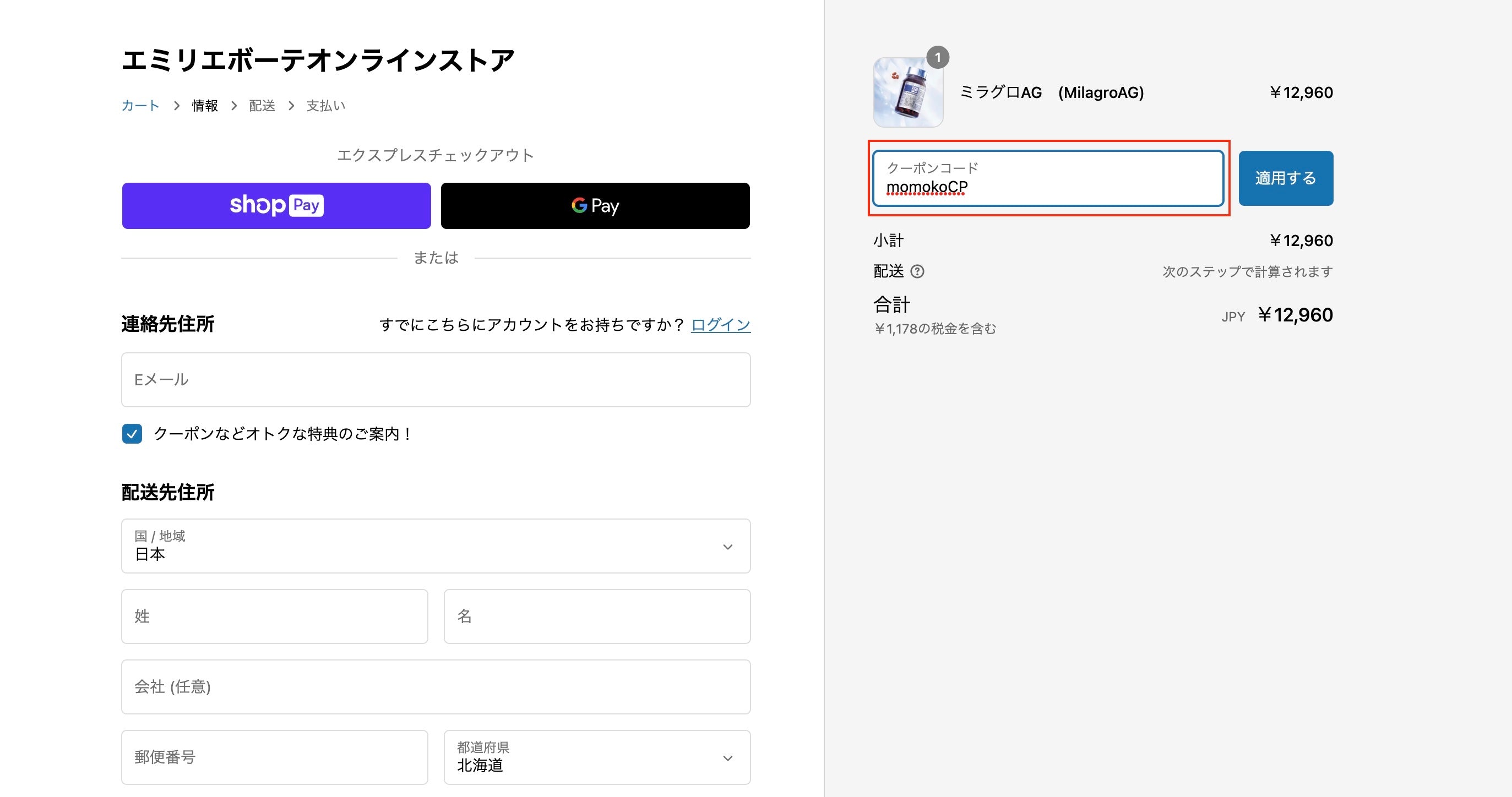4.該当のクーポンコードを入力し、→(適用する)ボタンを押して、クーポンを適用します。